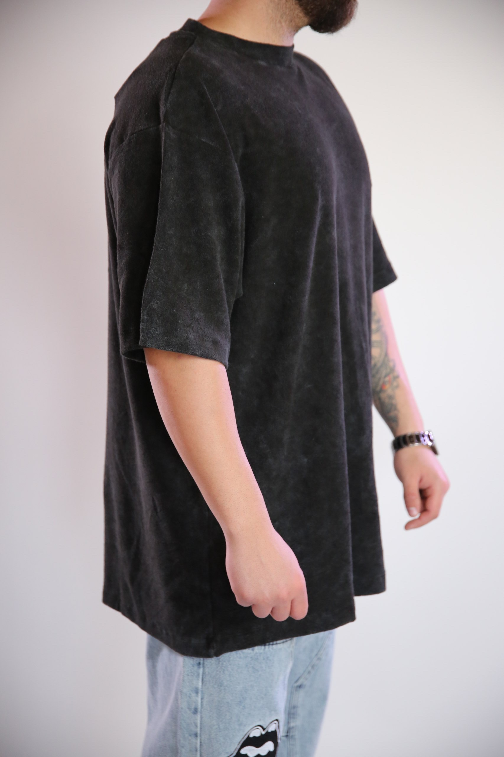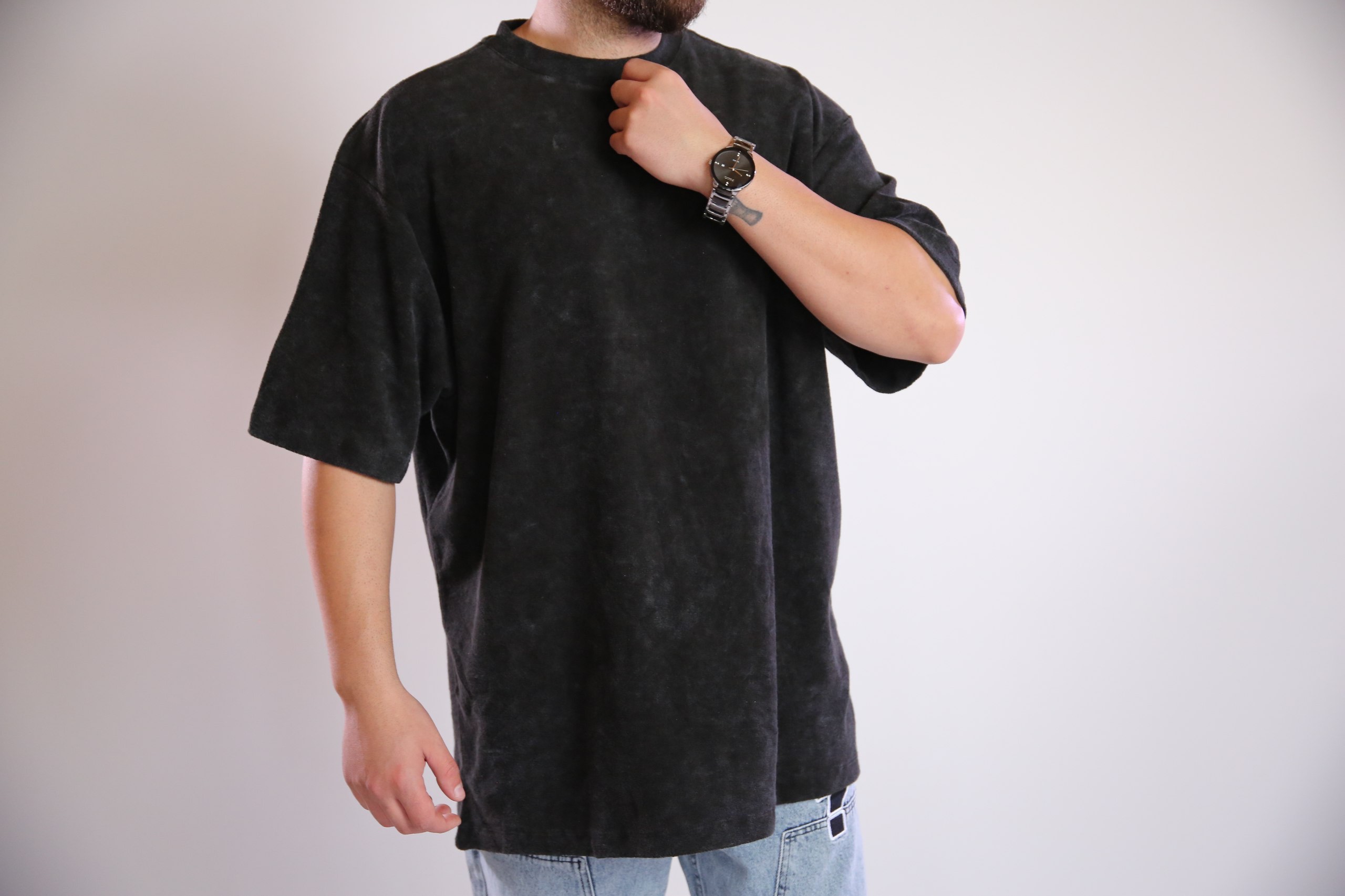 החולצה הפשוטה – אבל הכי לא רגילה. גוון אפור וינטג’ שטוף, בד נעים, וגזרה רחבה שמתאימה לכל מצב. פריט בייסיק מושלם עם טוויסט של סטייל.